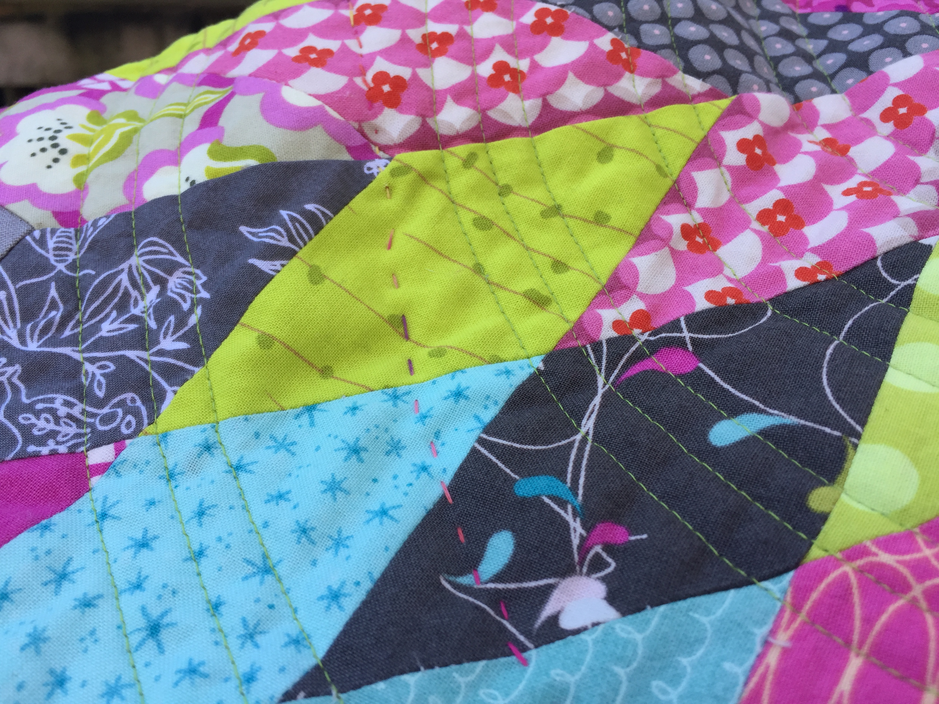 I designed, pieced and quilted this piece for Intown Quilters to take to QuiltCon in 2017. It was a huge hit and the shop sold out of patterns and bundles. This quilt is made using Alison Glass fabric.